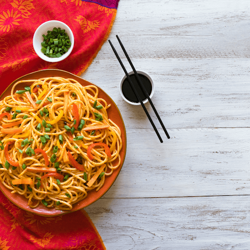 While Hakka and Schezwan noodles are ideal, you can experiment with your favorite noodle types.